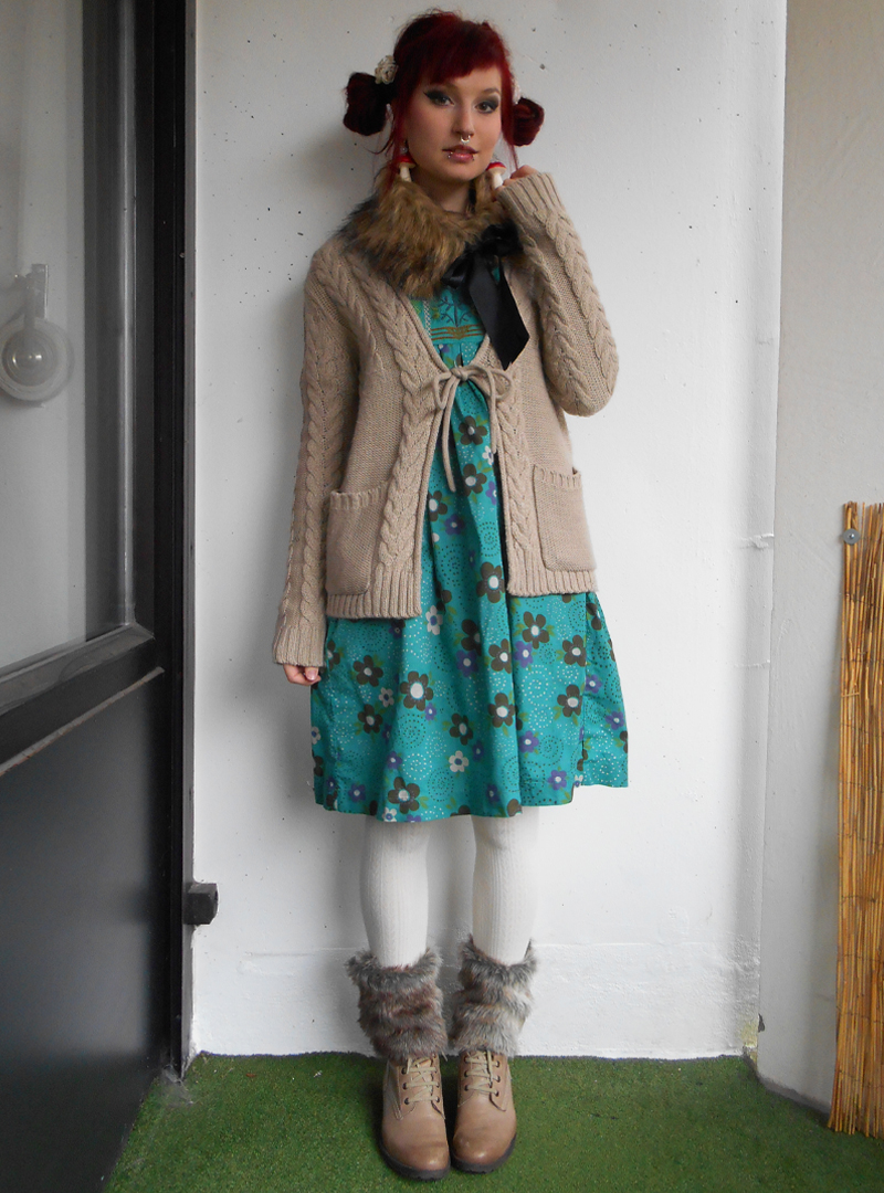 I wore this mori outfit for Christmas shopping at the beginning of December. The plan was to make some proper outfit with this beautiful dress from Gudrun Sjõdén, but in the end the nice embroidery isn´t visible under the collar at all... so maybe next time =D I also wore my new DIY faux fur legwarmers which I wanted to make for ages ! (I bought the fabric like two years ago?!) I know you can´t see it on photos, but they each have three cute wooden buttons on one side :3